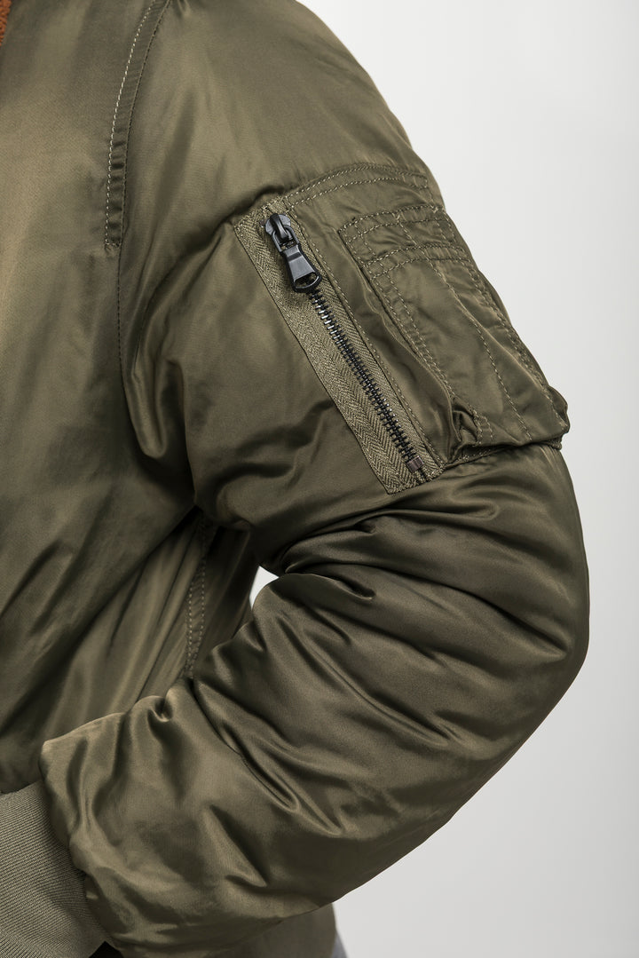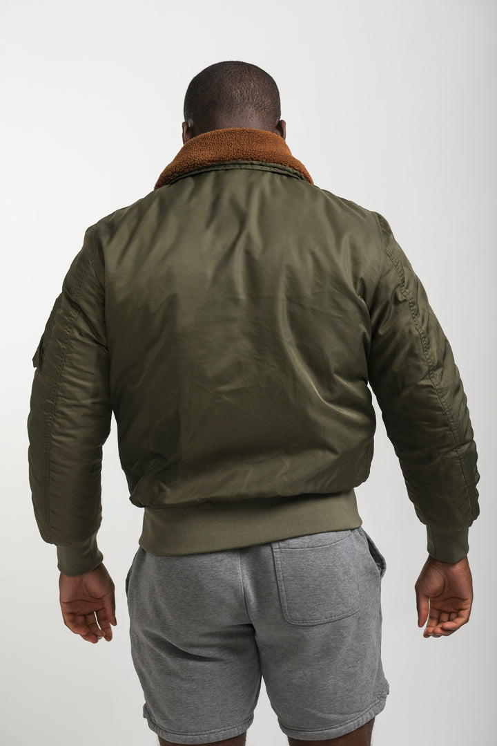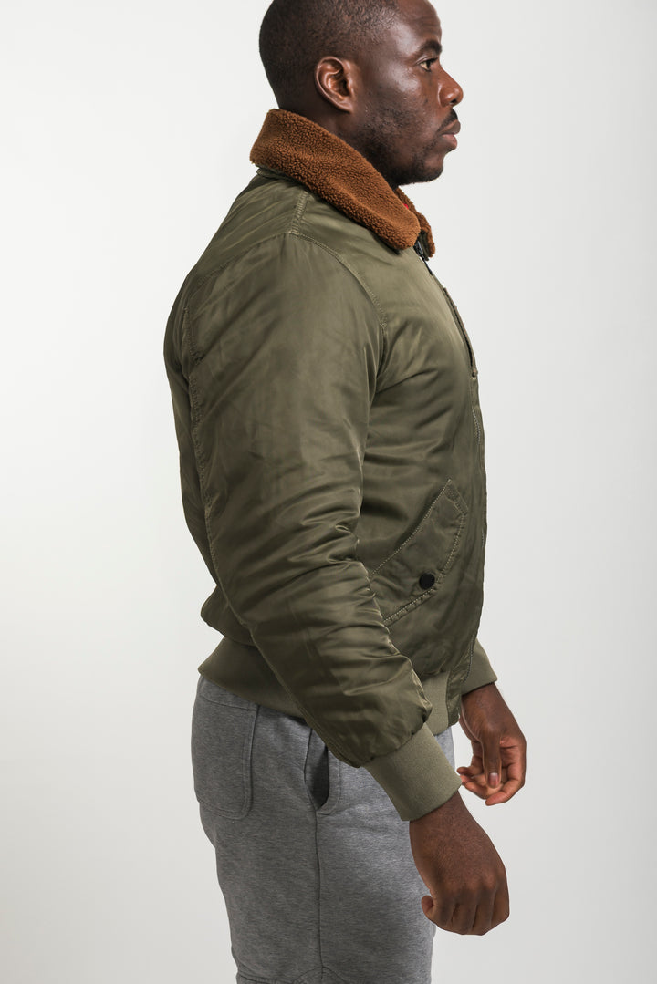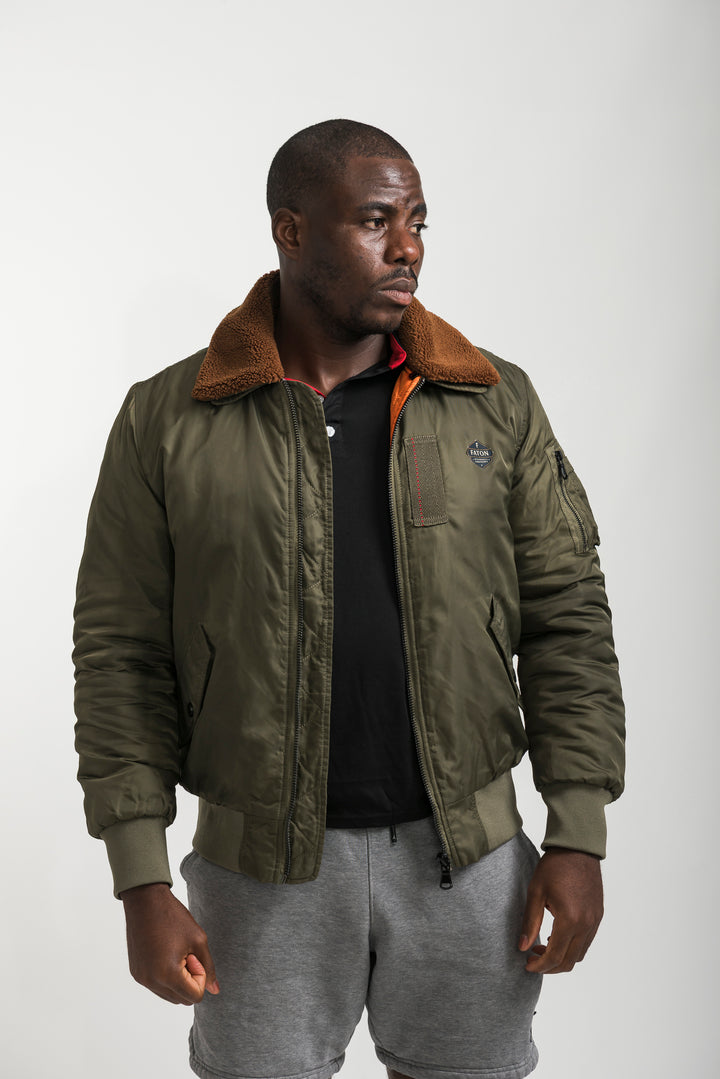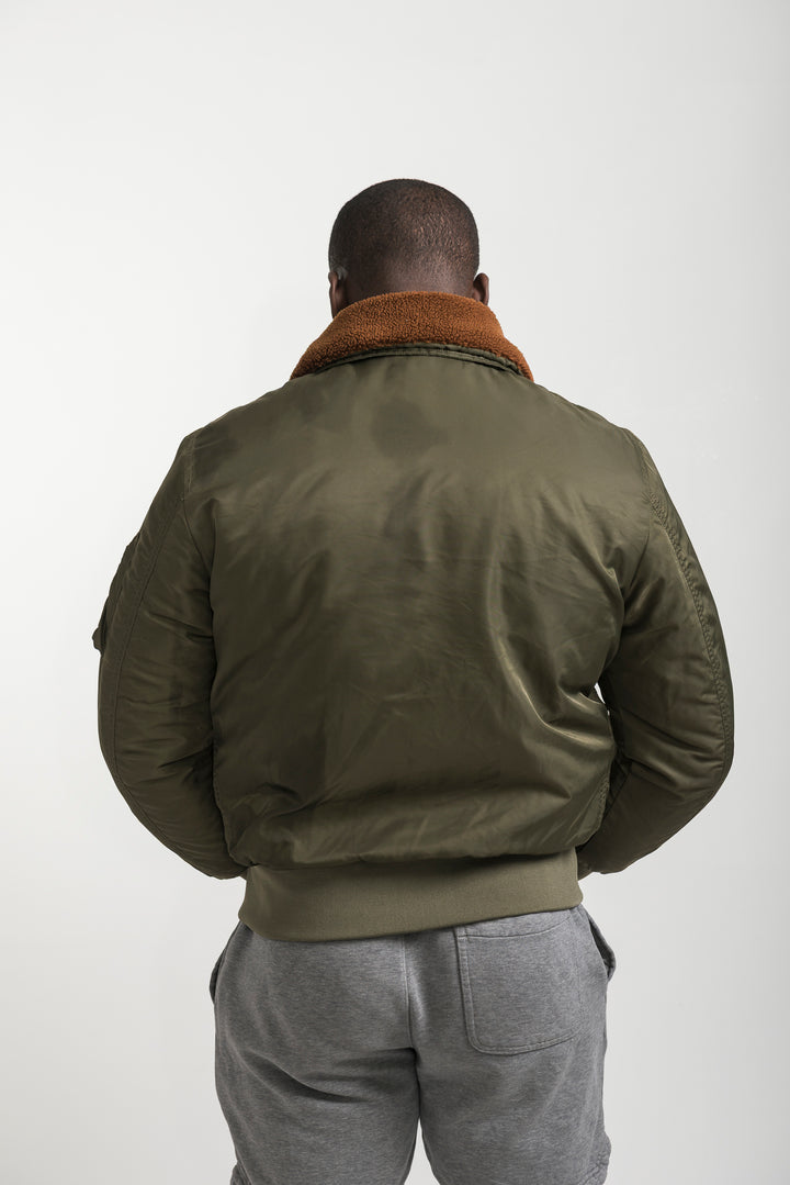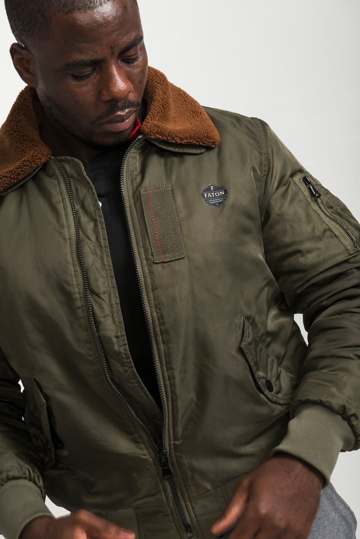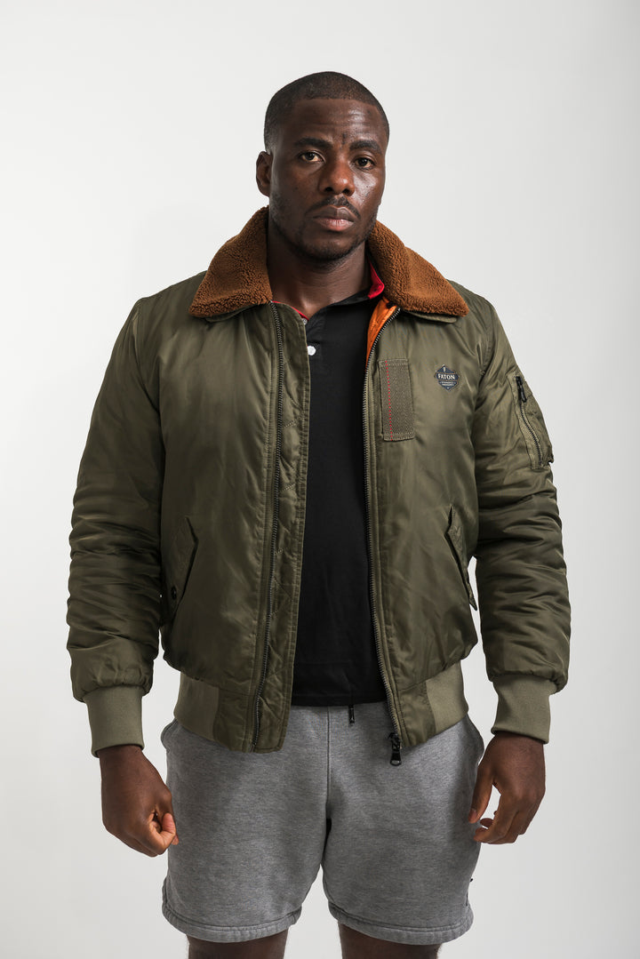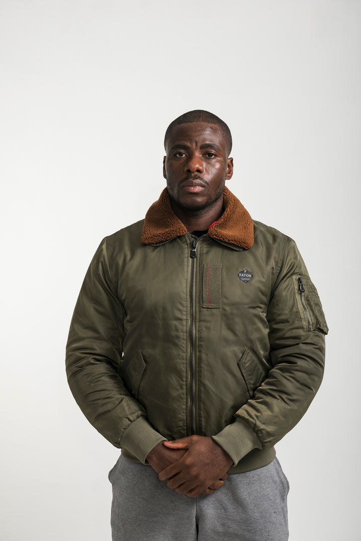 Stay warm and stylish with the Khaki Bomber Jacket featuring a soft shearling collar. Inspired by classic aviator style, this bomber combines timeless design with modern comfort. Finished with ribbed cuffs, long sleeves, and durable fabric, it’s perfect for layering in colder weather.
