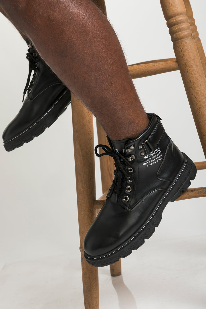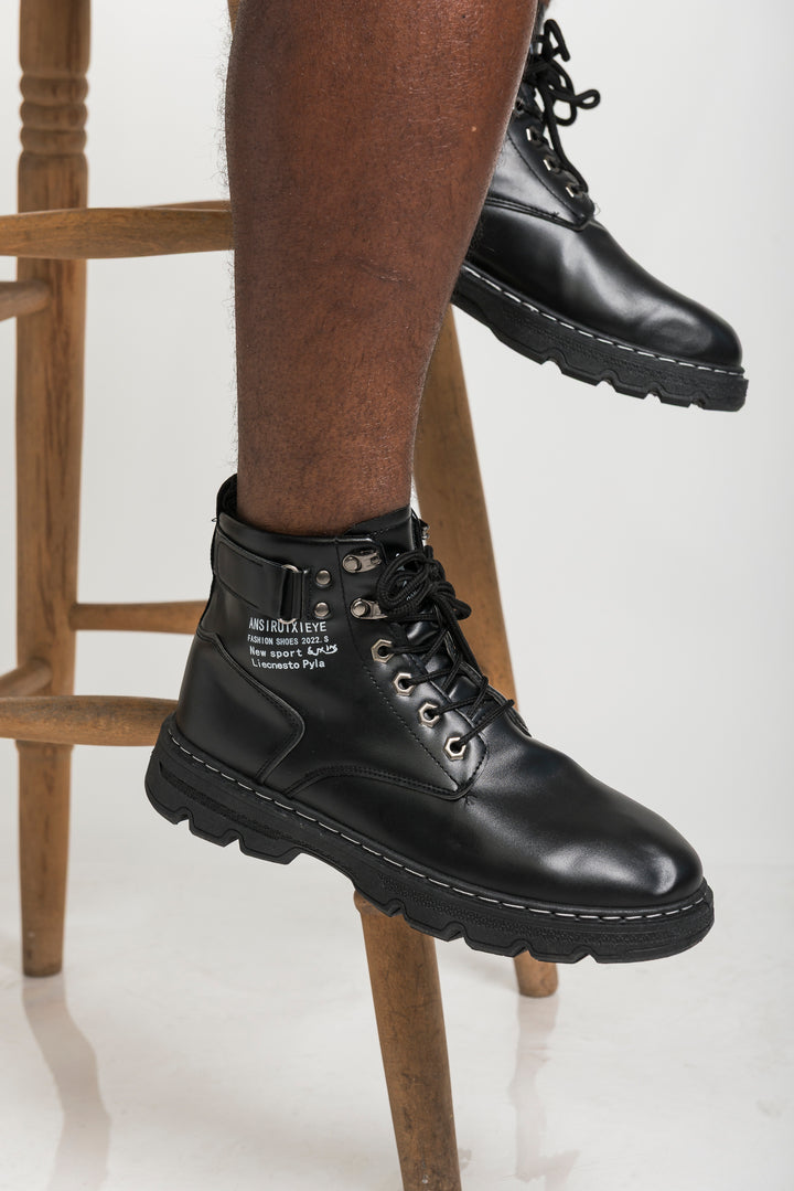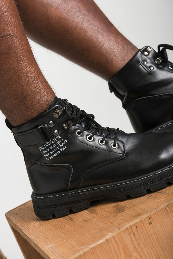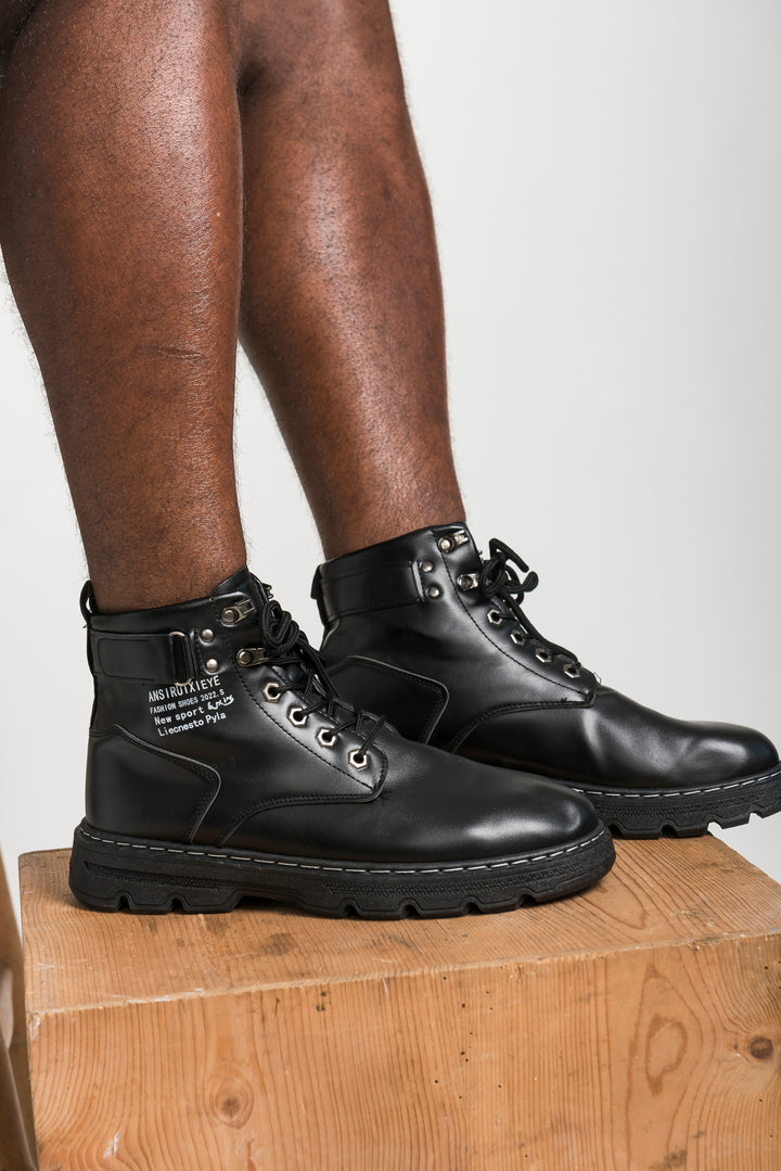 Step into bold style with the Black Lace-Up Ankle Boots. Built for everyday durability with a sleek streetwear edge, these boots feature a high-grip rubber sole and supportive ankle design. Perfect for pairing with jeans or cargos, they bring versatility and toughness to your wardrobe.
