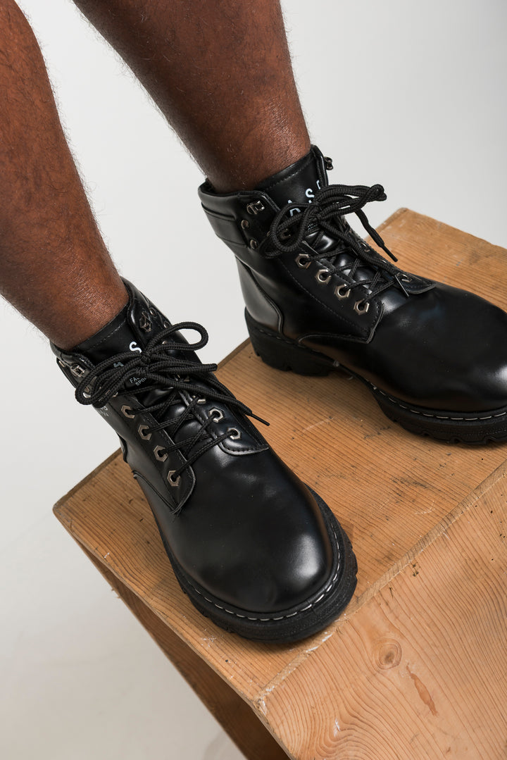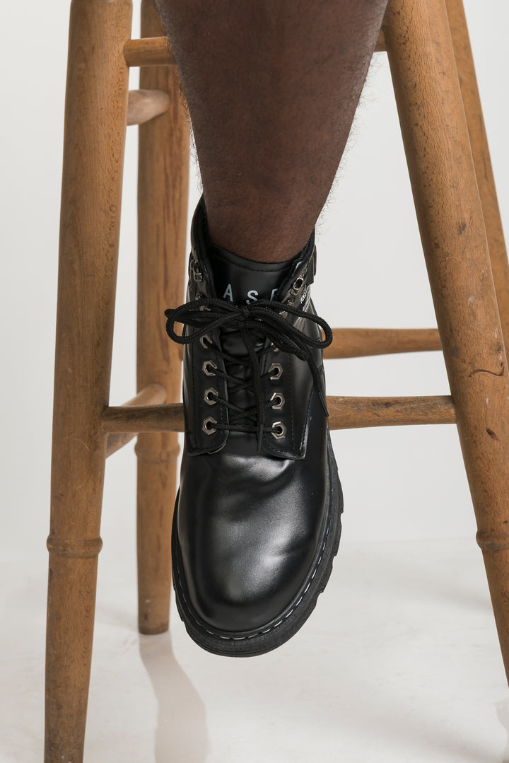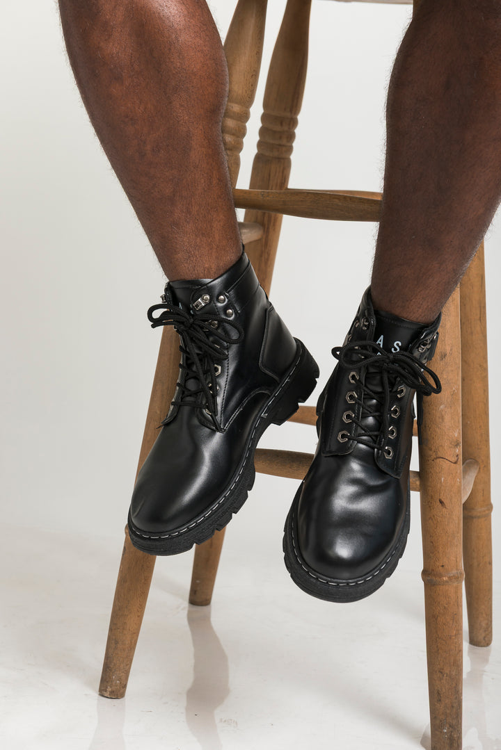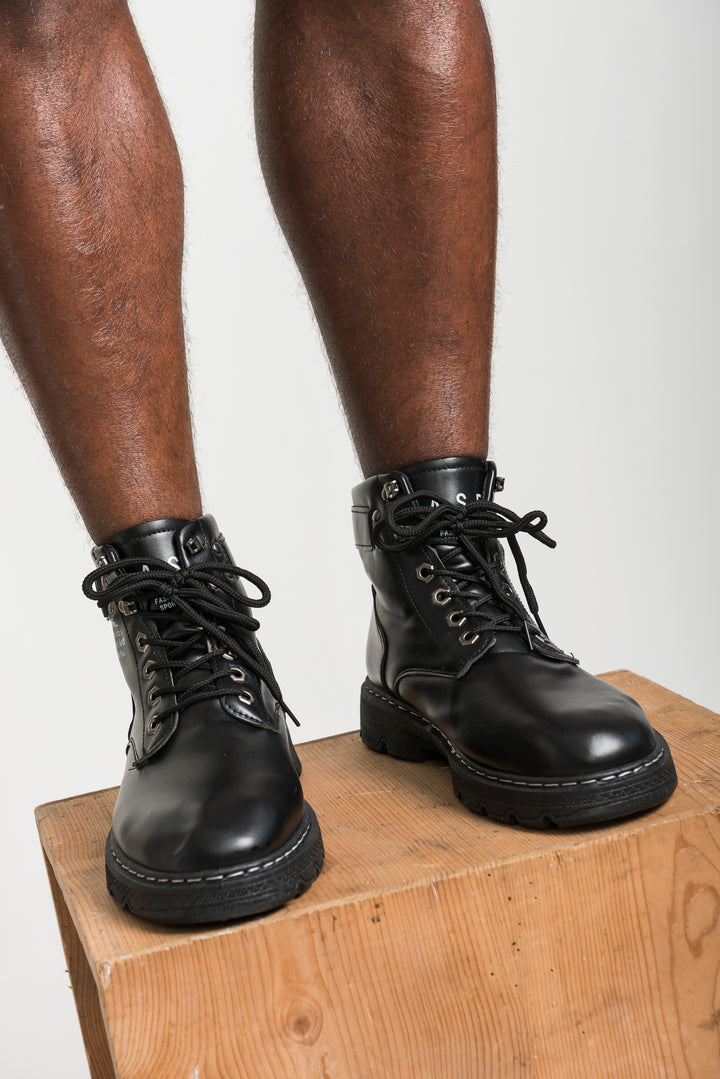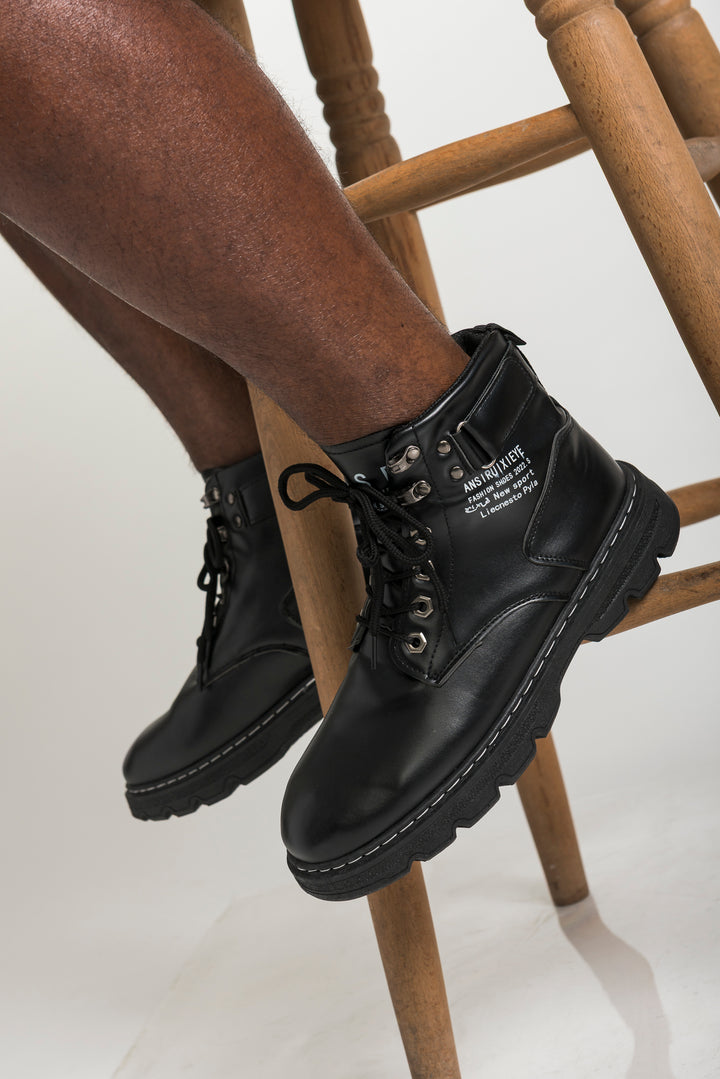 Step into bold style with the Black Lace-Up Ankle Boots. Built for everyday durability with a sleek streetwear edge, these boots feature a high-grip rubber sole and supportive ankle design. Perfect for pairing with jeans or cargos, they bring versatility and toughness to your wardrobe.