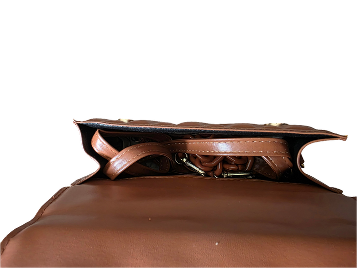 The Brown Quilted Box Handbag adds a touch of luxury to your everyday style. Designed with a structured quilted exterior and elegant metal details, it’s perfect for both casual and formal outfits. Compact yet spacious, this handbag carries your essentials with sophistication.