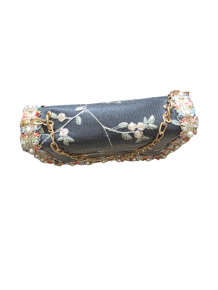Add elegance to your evening look with the Black Embroidered Clutch Bag. Featuring detailed embroidery, a sleek silhouette, and a gold-tone chain strap, this bag is perfect for nights out, events, or special occasions. Compact yet practical, it fits all your essentials in style.
